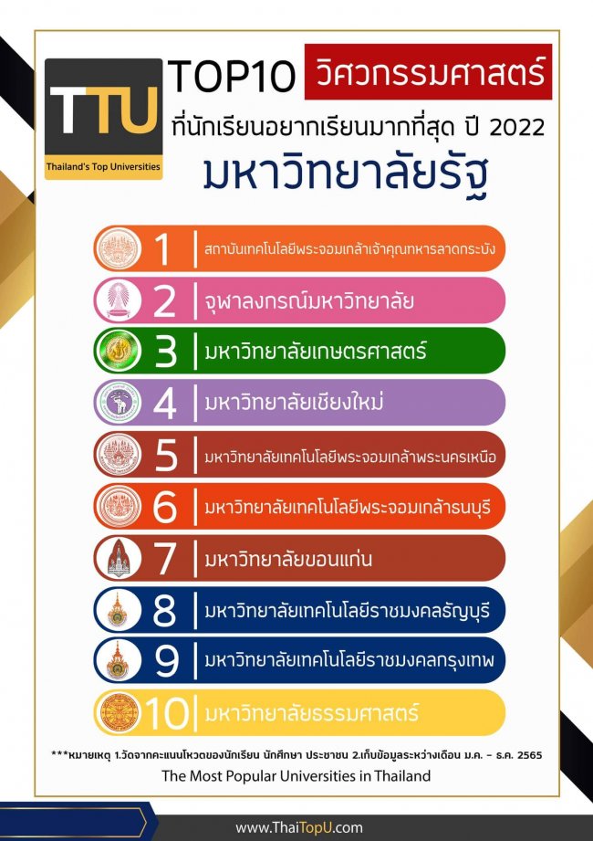 Top10 คณะวิศวกรรมศาสตร์ ที่น่าเรียนที่สุด
