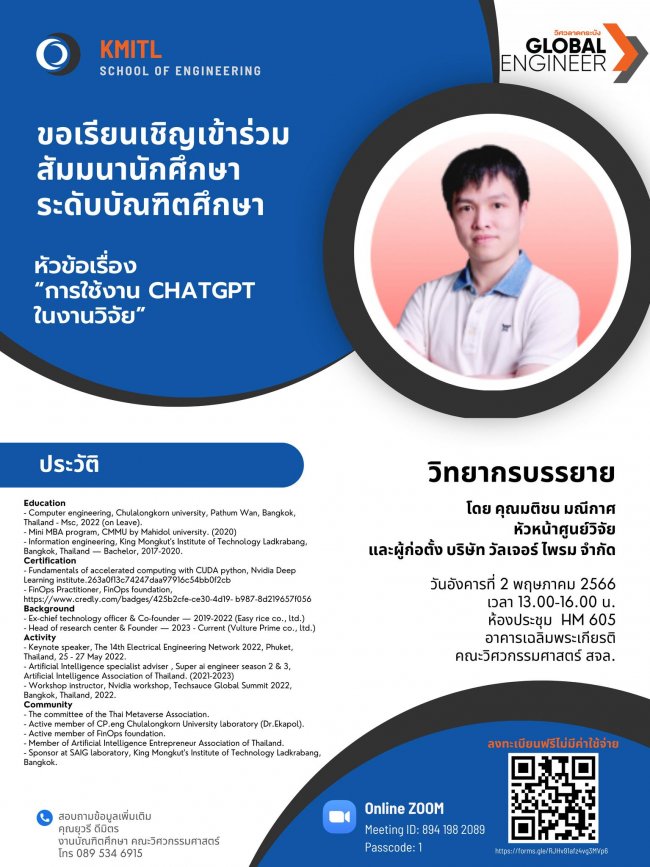 “สัมมนานักศึกษา ระดับบัณฑิตศึกษา หัวข้อเรื่อง การใช้งาน CHATGPTในงานวิจัย”