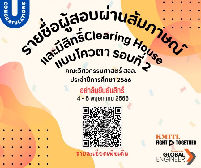 ประกาศ รายชื่อผู้สอบผ่านสัมภาษณ์และมีสิทธิ์Clearing House แบบโควตา รอบที่ 2