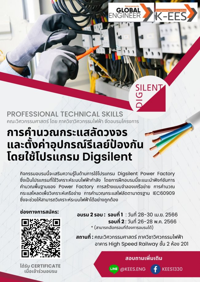 ศูนย์พัฒนศึกษาวิศวกรรมศาสตร์ วิศวฯจัดโครงการอบรมการคำนวณกระแสลัดวงจร และตั้งค่าอุปกรณ์รีเลย์ป้องกัน โดยใช้โปรแกรม Digsilent