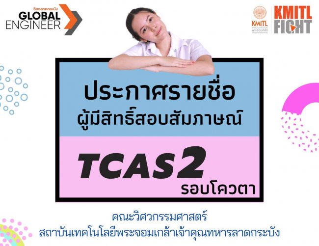 ประกาศรายชื่อ ผู้มีสิทธิ์สอบสัมภาษณ์ TCAS2 รอบโควตา วิศวลาดกระบัง