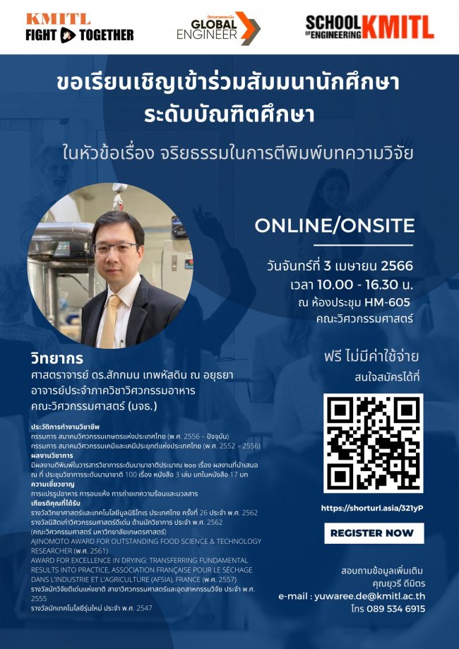 ขอเชิญเข้าร่วม “สัมมนานักศึกษา ระดับบัณฑิตศึกษา หัวข้อเรื่อง จริยธรรมในการตีพิมพ์บทความวิจัย ”