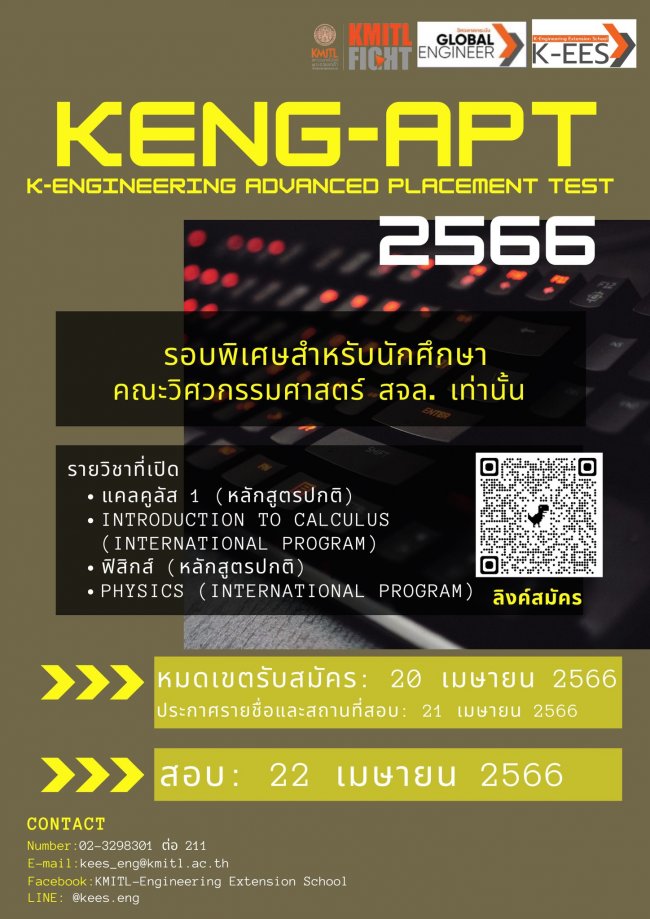 ศูนย์พัฒนศึกษาวิศวกรรมศาสตร์ (K-EES) เปิดรับสมัคร KENG-APT 2023 สำหรับนักศึกษาคณะวิศวฯ สจล.เท่านั้น