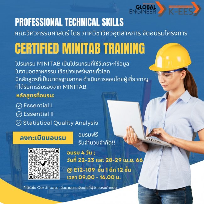 โครงการ PROFESSIONAL TECHNICAL SKILL หลักสูตร Certified MINITAB Training.