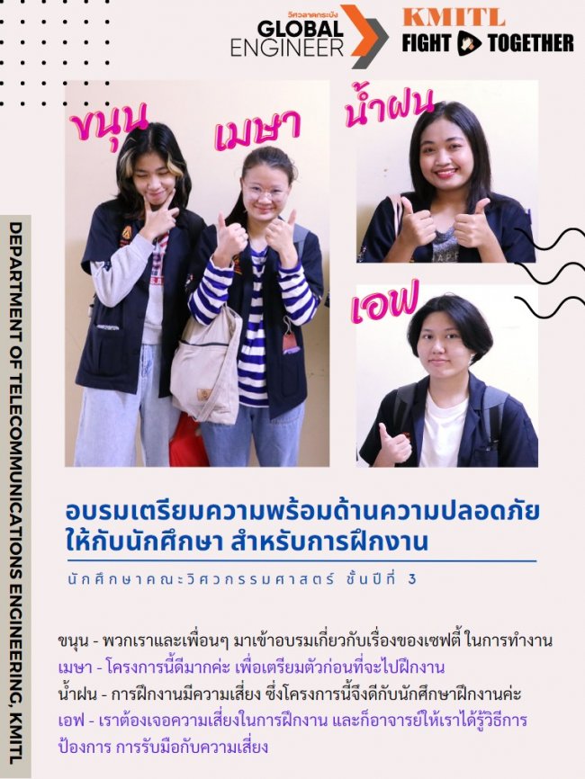 อบรมเตรียมความพร้อมด้านความปลอดภัยให้กับนักศึกษาคณะ สำหรับการฝึกงาน” นศ.ปี3 ภาคโทรคมนาคม