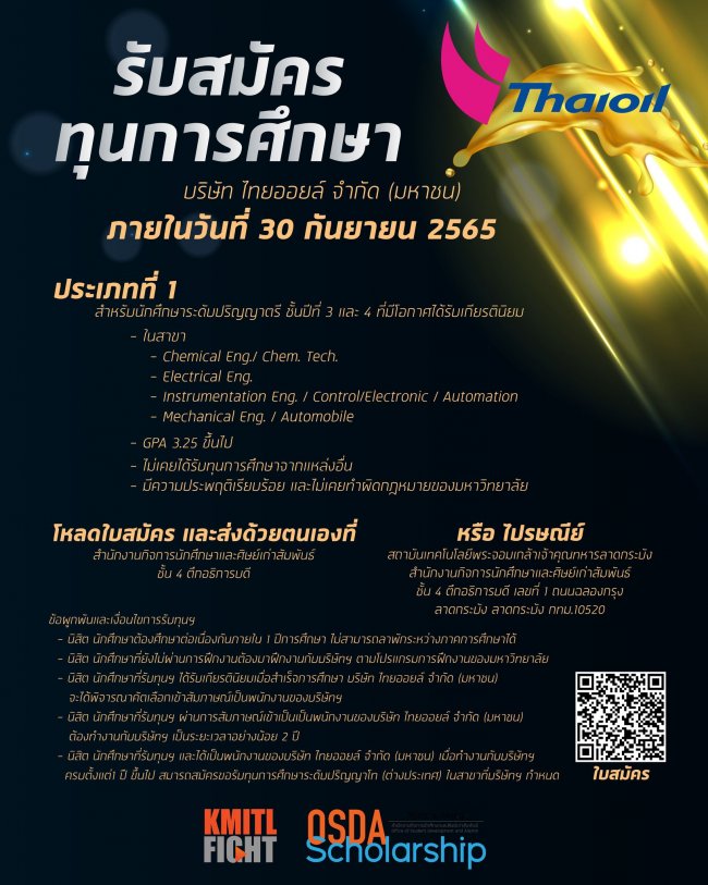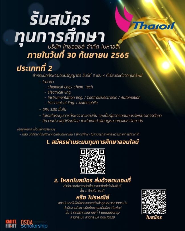 สมัครทุนการศึกษา บริษัทไทยออยล์
