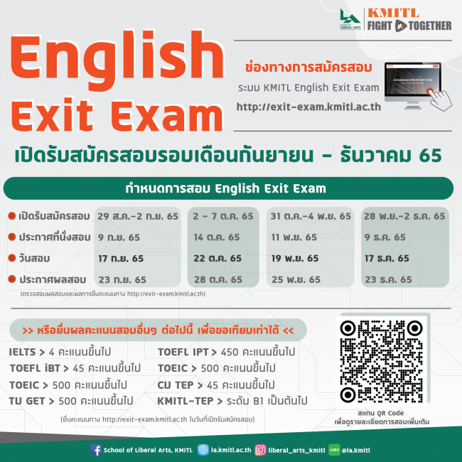 รอบสอบ KMITL English Exit Exam เดือนกันยายน-ธันวาคม 2565