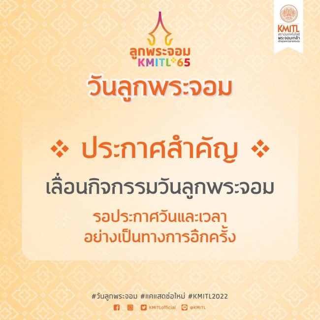 ขอเลื่อนการจัดงานวันลูกพระจอม เนื่องจากฝนตกหนัก