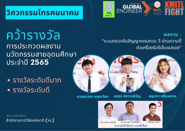 รางวัลจากผลงานการวิจัย เรื่อง “ระบบตรวจจับสัญญาณรบกวน 3 ย่านความถี่ต่อเครื่องรับจีเอ็นเอสเอส