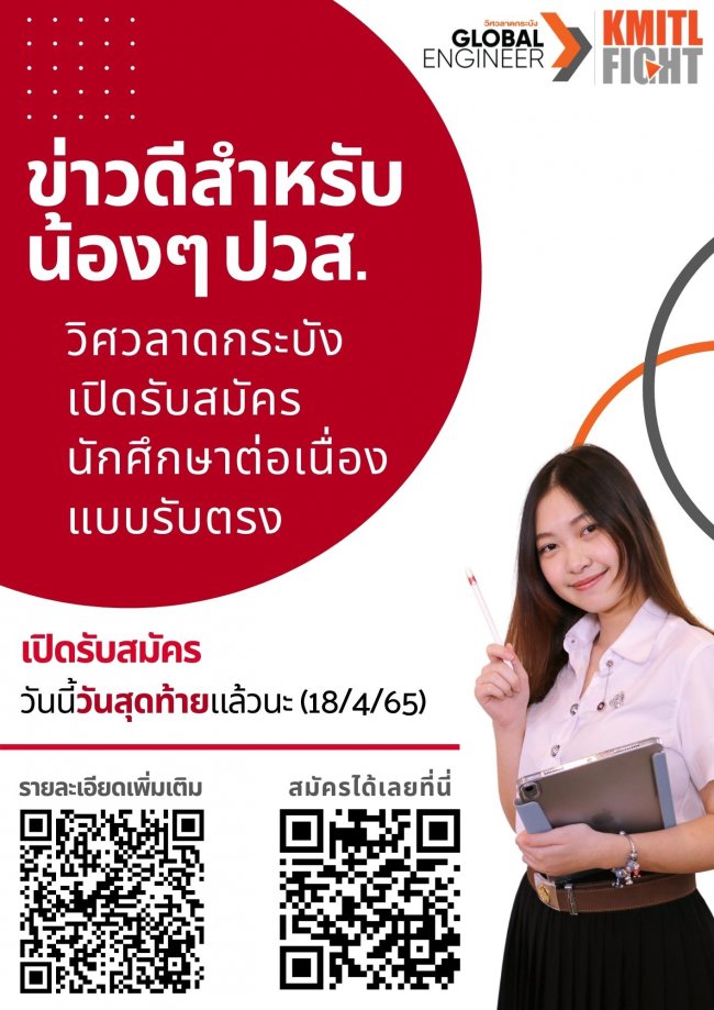 คณะวิศวฯ สจล. เปิดรับสมัครสอบคัดเลือกบุคคลเข้าศึกษาต่อระดับปริญญาตรี ต่อเนื่อง แบบรับตรง ประจำปี2565