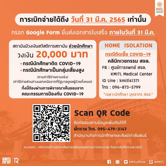 สวัสดิการ สจล. ช่วยเหลือนักศึกษาติดเชื้อ COVID-19 และนักศึกษาเป็นกลุ่มเสี่ยงสูง