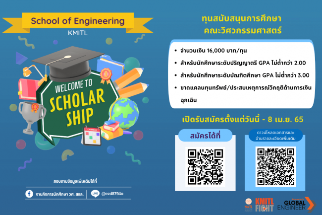 ทุนสนับสนุนการศึกษาสำหรับนักศึกษาคณะวิศวเปิดรับสมัครตั้งแต่วันนี้ – 8 เม.ย. 65