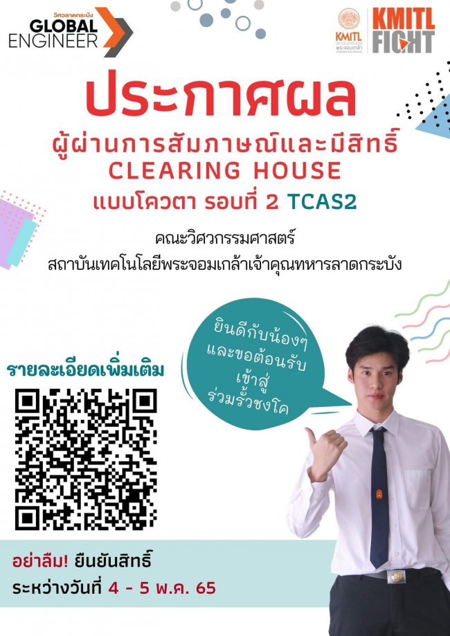 รายชื่อผู้สอบผ่านสัมภาษณ์และมีสิทธิ์ Clearing House แบบโควตา รอบที่ 2