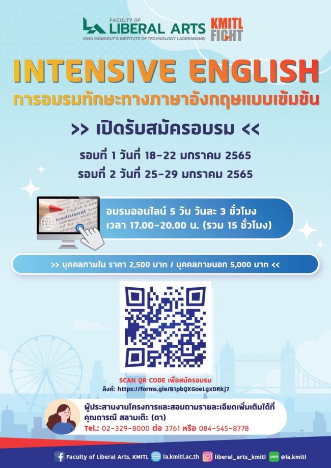 คณะศิลปศาสตร์ สจล. เปิดรับสมัครผู้ที่สนใจอบรมทักษะทางภาษาอังกฤษแบบเข้มข้น (Intensive English)