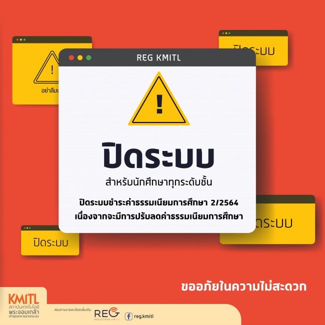 ประชาสัมพันธ์ปิดระบบชำระค่าธรรมเนียมการศึกษา 2/2564 เนื่องจากจะมีการปรับลดค่าธรรมเนียมการศึกษา