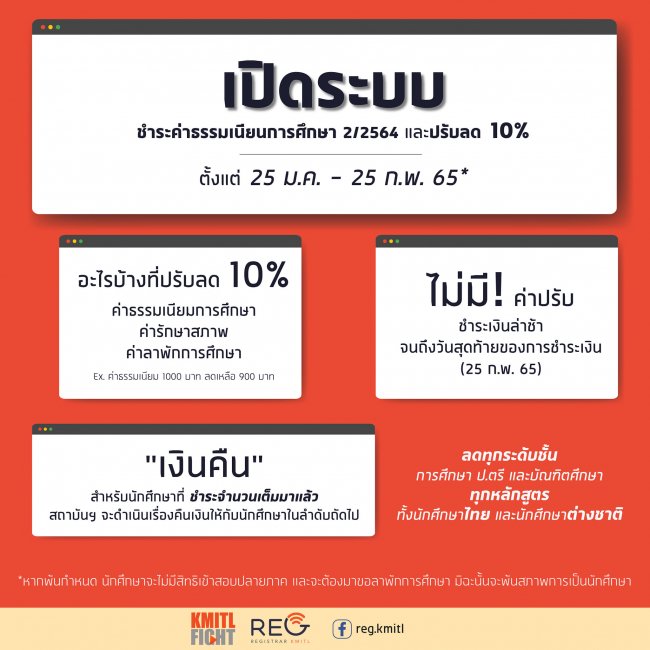 เปิดระบบชำระเงินค่าธรรมเนียมการศึกษา 2/2564 พร้อมส่วนลด 10%