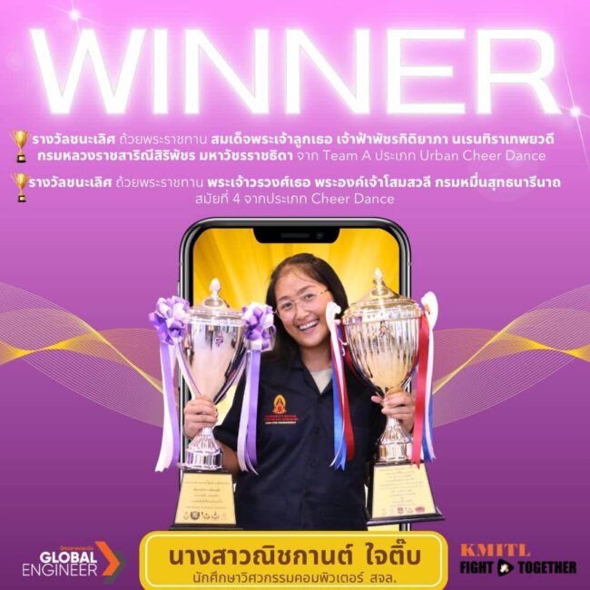 นศ.วิศวคว้า 2 รางวัล จากสนามแข่งขันเชียร์ลีดดิ้ง การแข่งขันเชียร์ลิดดิ้งแห่งประเทศไทย ชิงถ้วยพระราชทาน ครั้งที่ 19