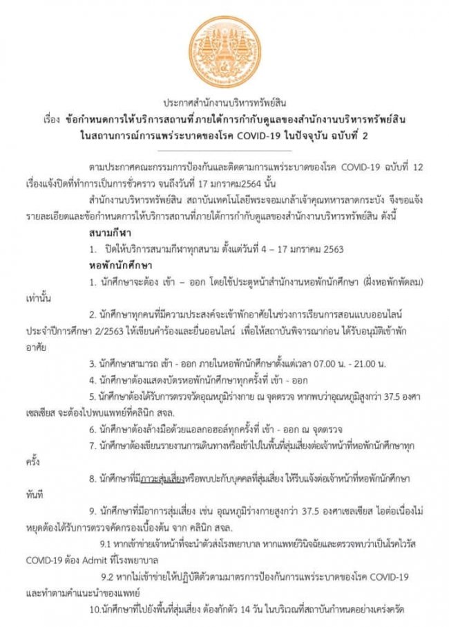 แจ้งปิดทำการเป็นการชั่วคราว ตามประกาศกรุงเทพมหานคร เรื่อง สั่งปิดสถานที่เป็นการชั่วคราว