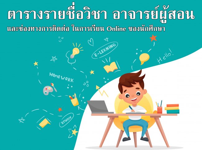 ตารางรายชื่อวิชา อาจารย์ผู้สอนและช่องทางการติดต่อในการเรียน Online ของนักศึกษา