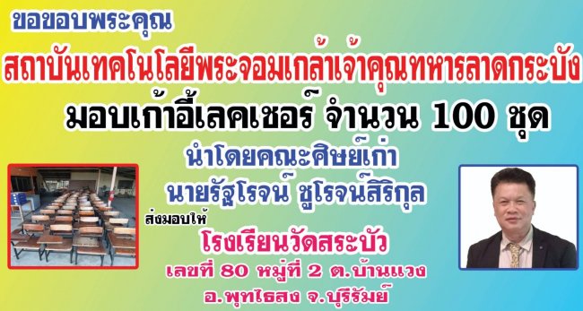 คณะวิศวฯ มอบเก้าอี้เลคเซอร์ ร.ร.วัดสระบัว ต.บ้านแวง อ.พุทไธลง จ.บุรีรัมย์