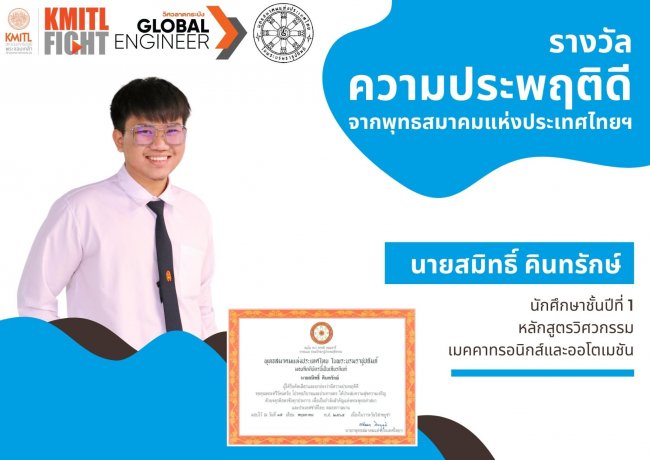 นศ.วิศวกรรมเมคคาทรอนิกส์และออโตเมชัน ได้รับเกียรติบัตรรางวัลความประพฤติดี