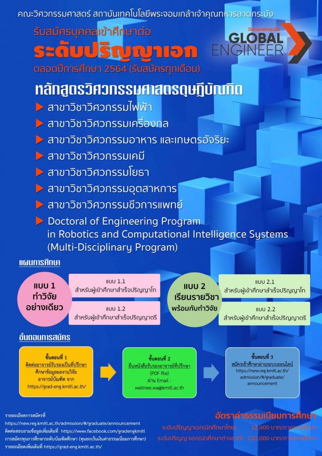 วิศวลาดกระบัง เปิดรับ ป.เอก ตั้งแต่วันนี้ – วันที่ 21 กันยายน 2564