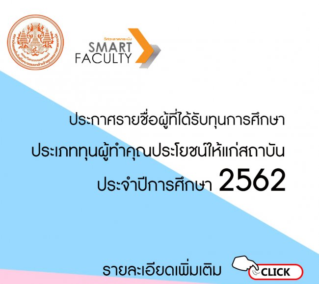 ประกาศรายชื่อผู้ที่ได้รับทุนการศึกษาประเภททุนผู้ทำคุณประโยชน์ให้แก่สถาบัน ประจำปีการศึกษา 2562