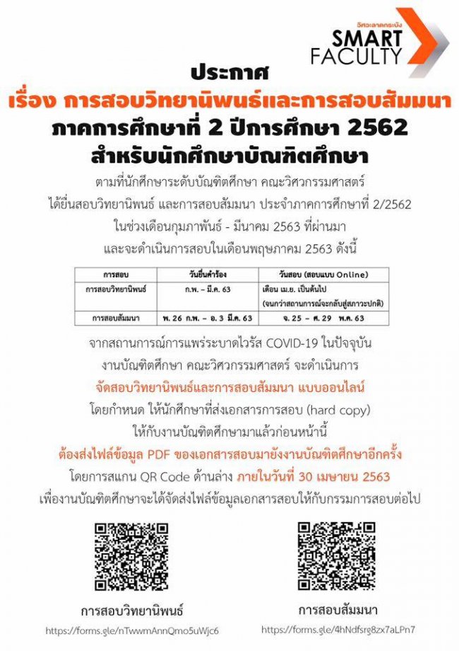 การสอบวัดคุณสมบัติ (Qualifying Examination) ภาคการศึกษาที่ 2 ปีการศึกษา 2562