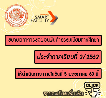 ขยายเวลาการขอผ่อนผันค่าธรรมเนียมการศึกษาประจำภาคเรียนที่ 2/2562 ให้ดำเนินการ ภายในวันที่ 5 พฤษภาคม 63 นี้