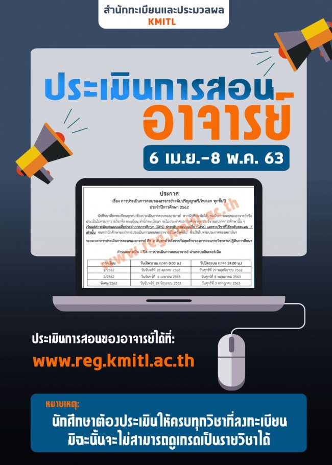 สำนักทะเบียนและประมวลผล เปิดระบบประเมินการสอนอาจารย์ 📍เริ่มตั้งแต่วันที่ 6 เมษายน – วันที่ 8 พฤษภาคม 2563