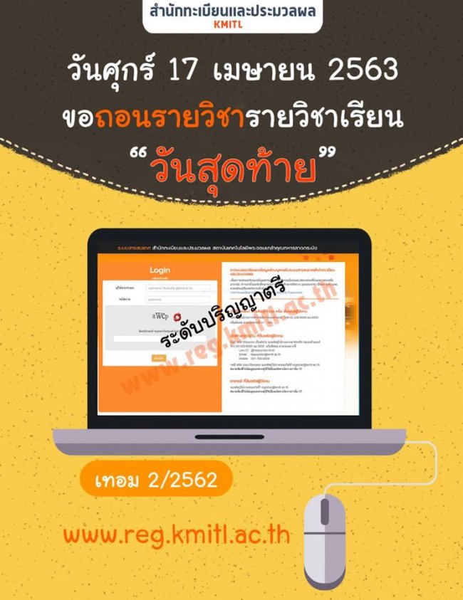 ถอนรายวิชาเรียนปีการศึกษา 2/2562