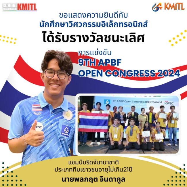 นักศึกษาวิศวกรรมอิเล็กทรอนิกส์ ได้รับรางวัลชนะเลิศ การแข่งขัน 9th APBF Open Congress 2024