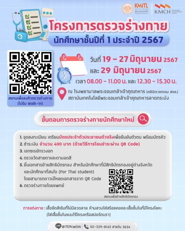 ตรวจร่างกาย นักศึกษาชั้นปีที่ 1 ประจำปี 2567