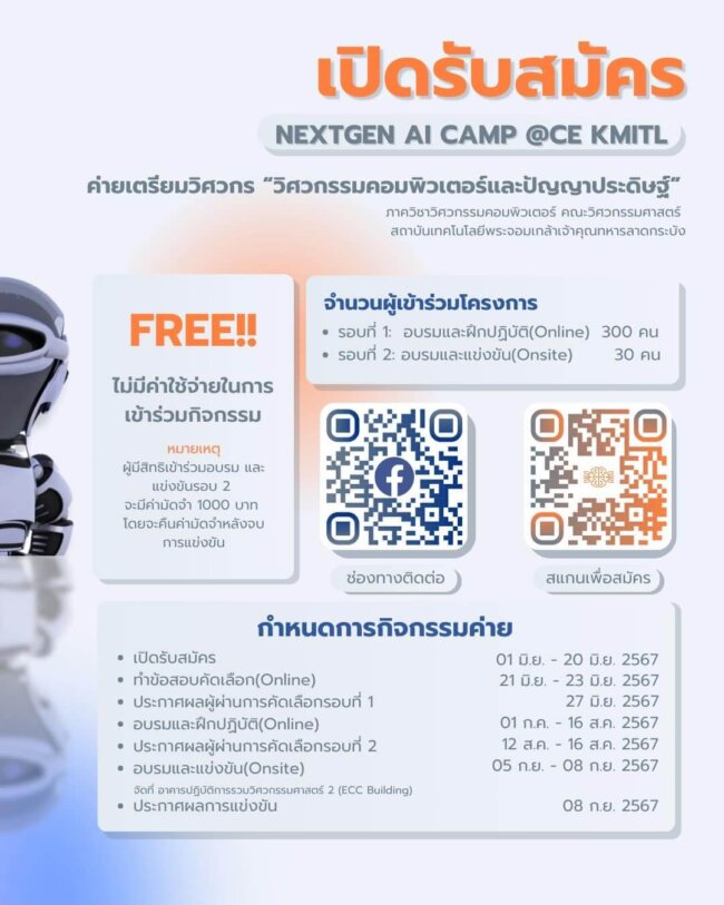 เรียนเชิญน้องมาค่าย “NextGen AI Camp” ค่ายคอมพิวเตอร์และปัญญาประดิษฐ์