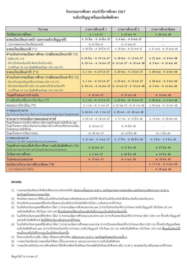 ปฏิทินกิจกรรมการศึกษา ประจำปีการศึกษา 2567