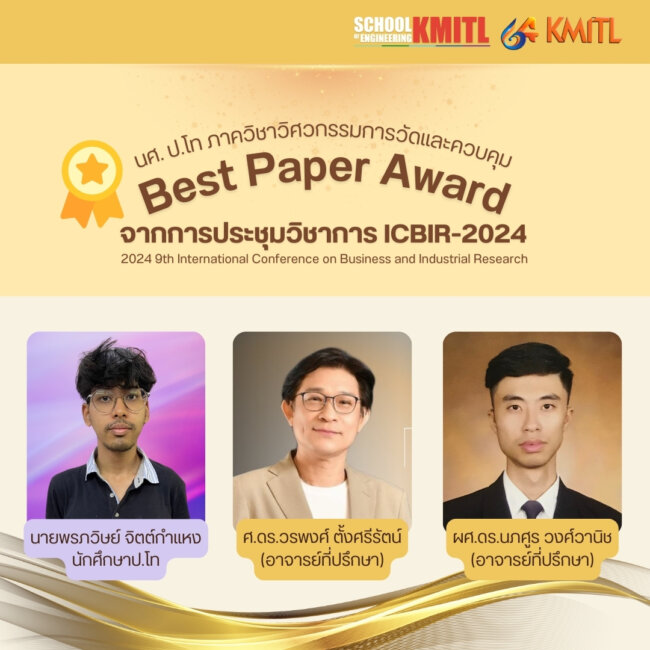 นศ.ป.โทวิศวการวัดและควบคุม วิศวลาดกระบัง ได้รับ “Best Paper Award” จากการประชุมวิชาการ ICBIR-2024