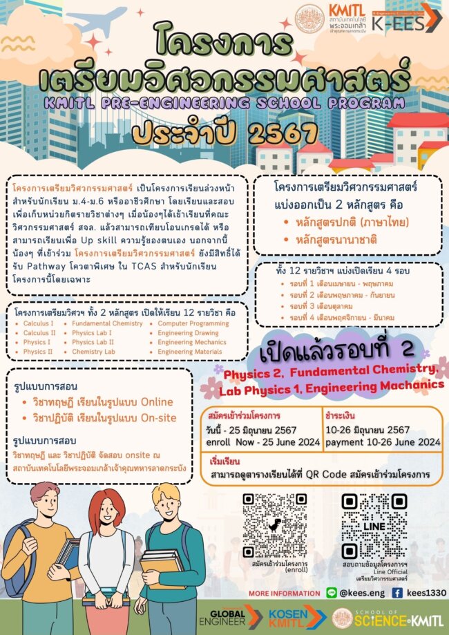 ศูนย์พัฒนศึกษาวิศวกรรมศาสตร์ (K-EES) เปิดรับสมัคร“โครงการเตรียมวิศวกรรมศาสตร์” รอบ 2 ประจำปี 2567