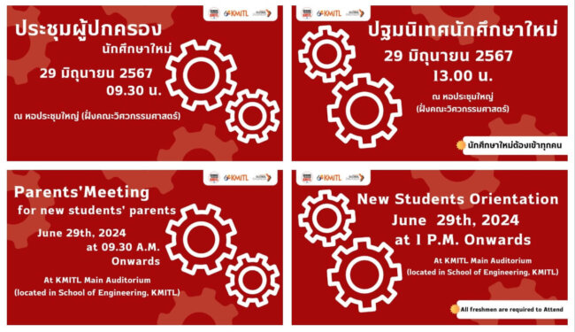 ขอเรียนเชิญผู้ปกครอง และน้องๆ นักศึกษาใหม่คณะวิศวกรรมศาสตร์ สจล.