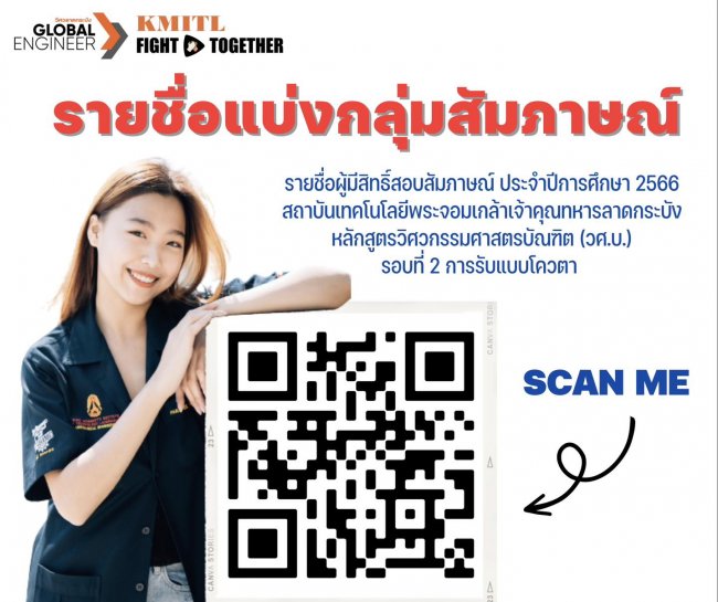 สอบสัมภาษณ์ TCAS2 รับแบบโควตา เริ่มเวลา 08.00 น. ณ หอประชุมใหญ่คณะวิศวกรรมศาสตร์ สจล.