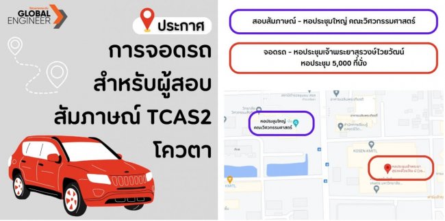 ที่จอดรถสำหรับผู้เข้าสอบสัมภาษณ์ TCAS2 การรับแบบโควตา ในวันเสาร์ที่ 8 เมษายน 2566