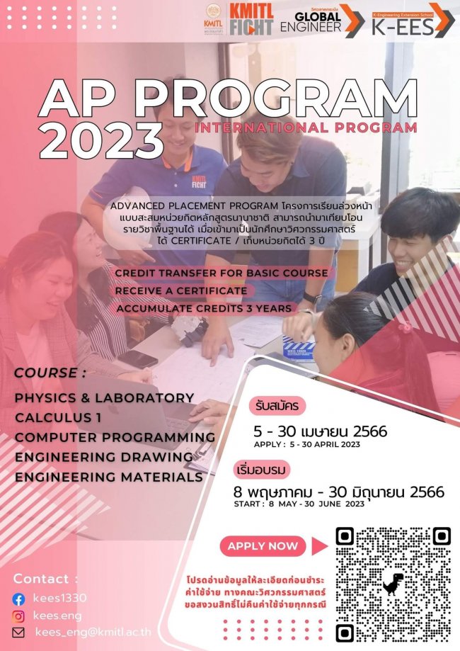 เปิดรับสมัครโปรแกรม AP (International Program) สําหรับผู้ที่เข้าสู่โครงการนานาชาติของโรงเรียนวิศวกรรมศาสตร์