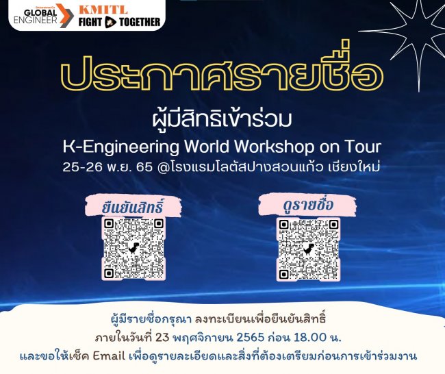 ประกาศรายชื่อผู้มีสิทธิ์เข้าร่วมงาน K-Engineering World Workshop on Tour
