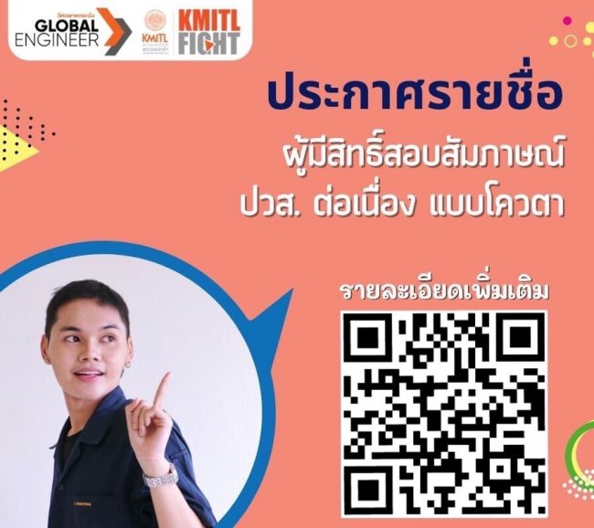 รายชื่อผู้มีสิทธิ์สอบสัมภาษณ์ ปวส.ต่อเนื่อง แบบโควตา วิศวลาดกระบัง