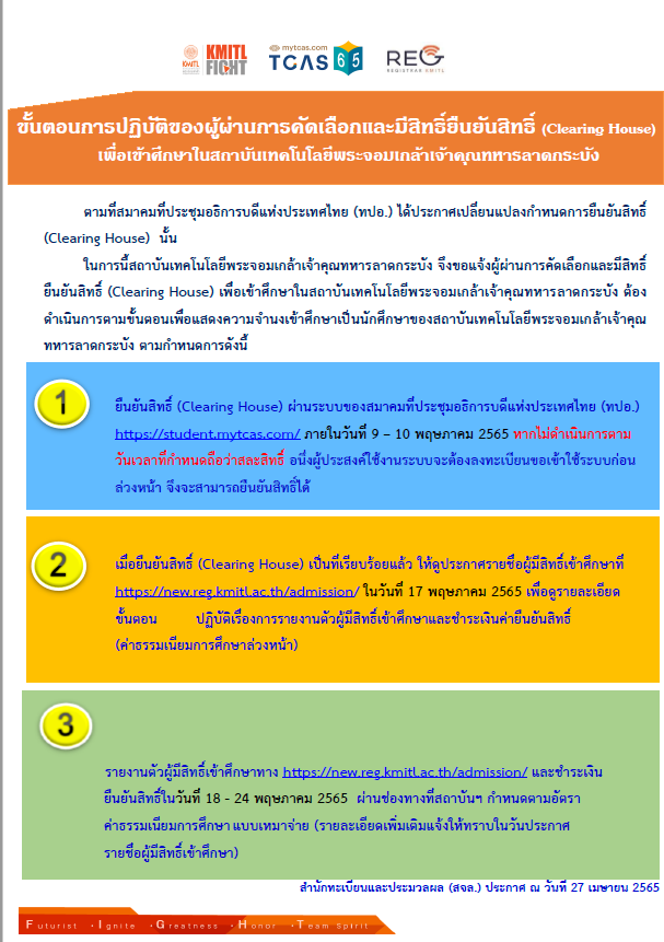 ขั้นตอนการปฏิบัติของผู้ผ่านการคัดเลือกและมีสิทธิ์ยืนยันสิทธิ์ (Clearing House)