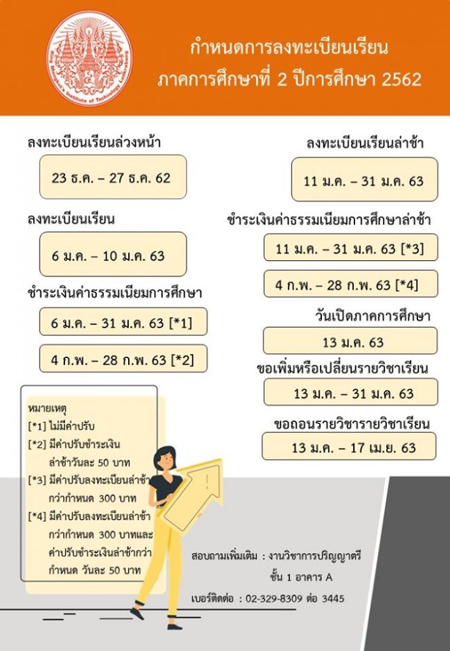 ประกาศกำหนดการลงทะเบียนเรียน ประจำปีการศึกษาที่ 2/2562