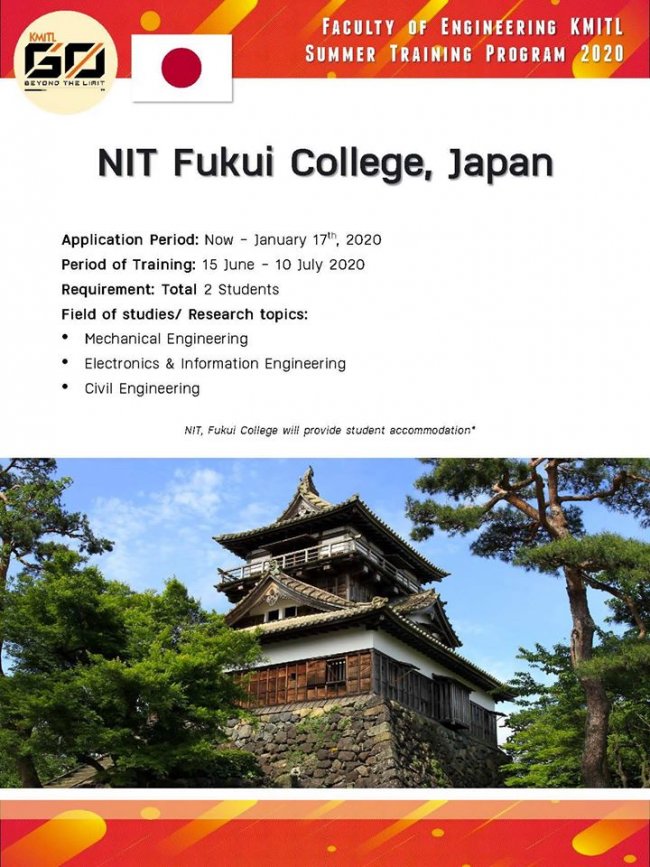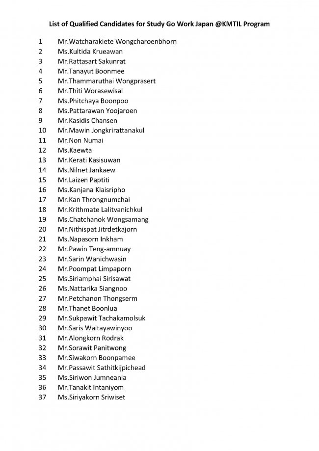 ประกาศรายชื่อนักศึกษาที่ผ่านการคัดเลือกเข้าร่วมโครงการ Study Go Work Japan@KMITL Program
